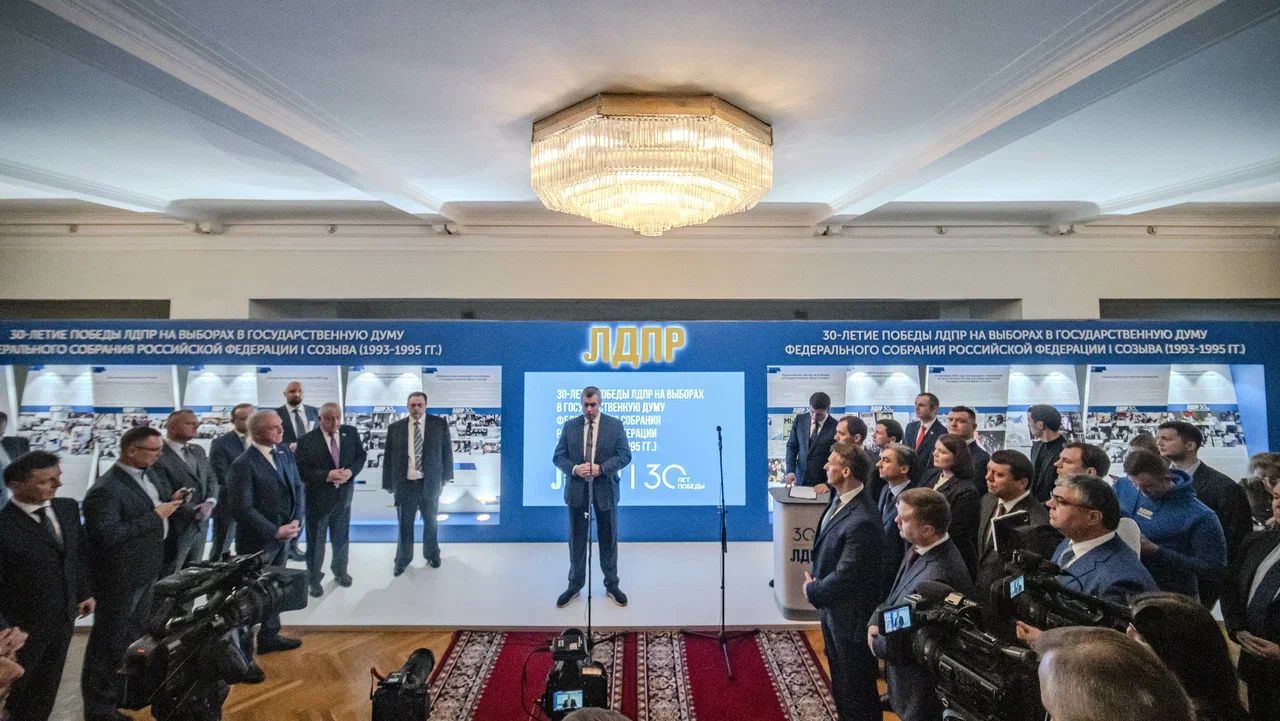 В Госдуме открылась выставка, посвящённая 30-летию победы ЛДПР на выборах в Государственную Думу первого созыва
