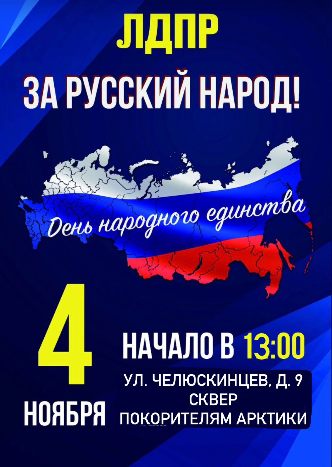 Мурманское региональное отделение ЛДПР приглашаем вас принять участие в митинге, посвященном Дню народного единства! Этот день символизирует сплочение нашего народа, уважение к традициям и ценностям, которые объединяют нас.