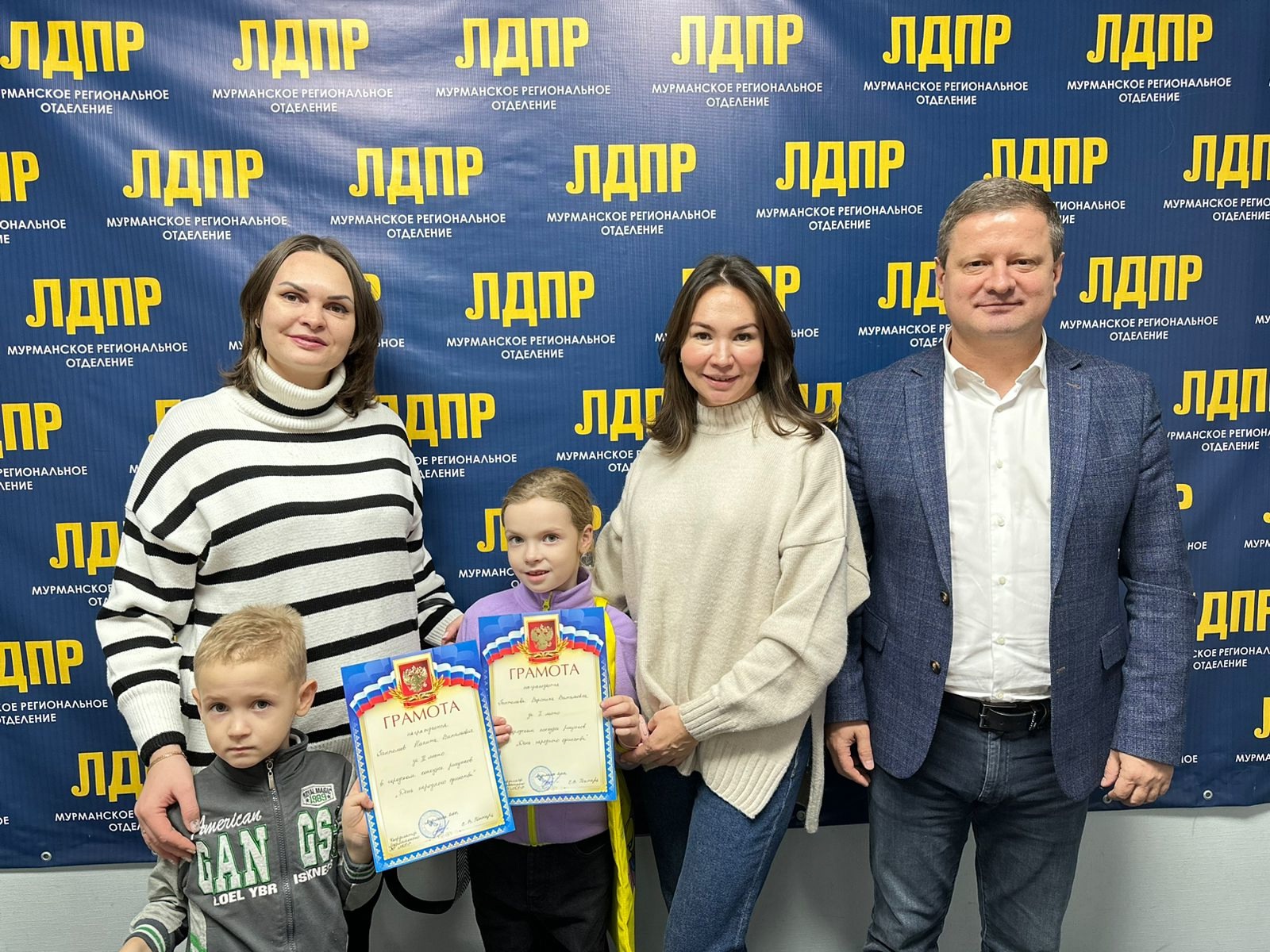 В День народного единства Мурманское региональное отделение ЛДПР провело конкурс рисунков для детей. На торжественном награждении победителей координатор регионального отделения партии Станислав Гонтарь поздравил юных художников и вручил им грамоты и сувениры от ЛДПР