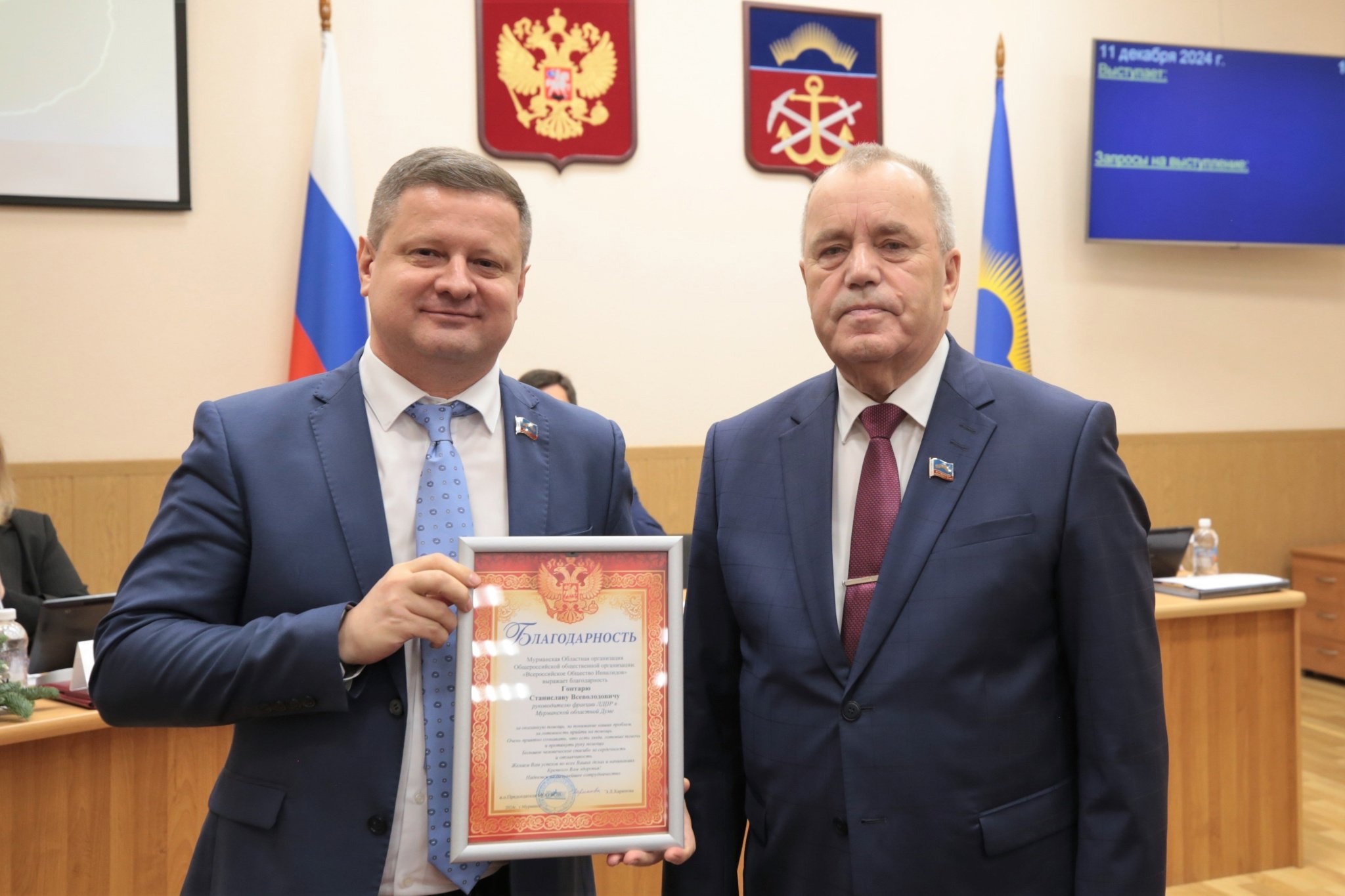 Работа Станислава Гонтаря, депутата Мурманской областной Думы от ЛДПР, была отмечена сразу двумя общественными организациями. Председатель Клуба молодых инвалидов и их попечителей «Валентина Плюс» Артем Ермоленко выразил благодарность представителю ЛДПР за сотрудничество и поддержку организации. Председатель Мурманской областной организации «Всероссийское общество инвалидов» Элла Харинова поблагодарила Станислава Гонтаря за оказываемую помощь и понимание проблем людей с инвалидностью.