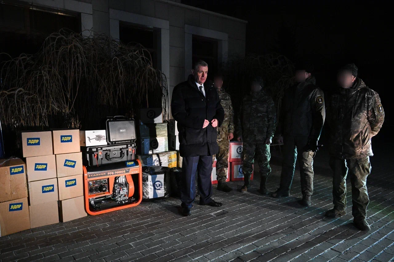 Во время визита в ДНР Председатель ЛДПР Леонид Эдуардович Слуцкий посетил местное региональное отделение, где передал гуманитарную помощь военнослужащим специальной военной операции